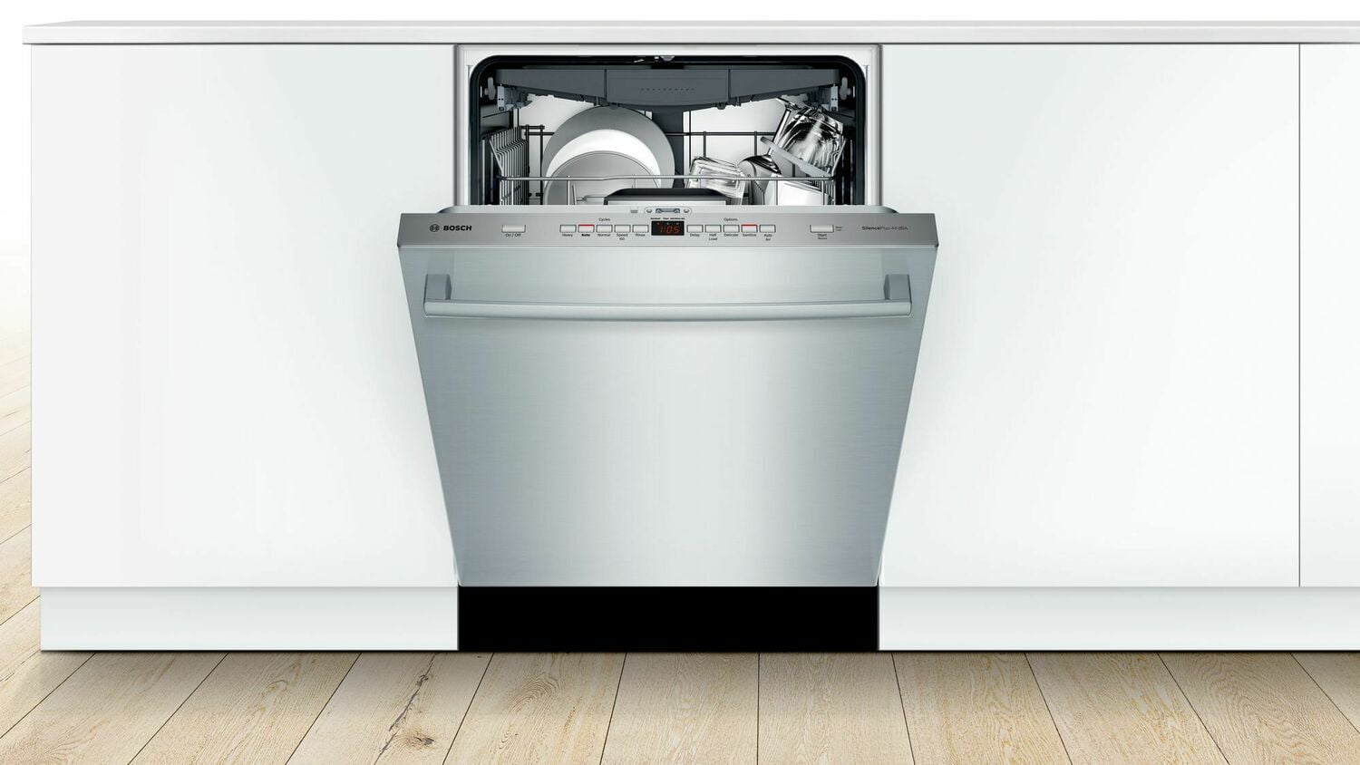 Bosch dishwashers are whisper quiet so you never have to wait until bedtime to run the dishwasher. Some of the 18 ways we approach noise reduction includes: multiple insulation layers, grindless food filtration, our EcoSilence motor system, and a sound absorbing base. *Based on an average of sound ratings for 24" full-size stainless steel tub dishwashers contained in major brands' websites. Major brands defined as TraQline Top 5 Market Share, December 2019.