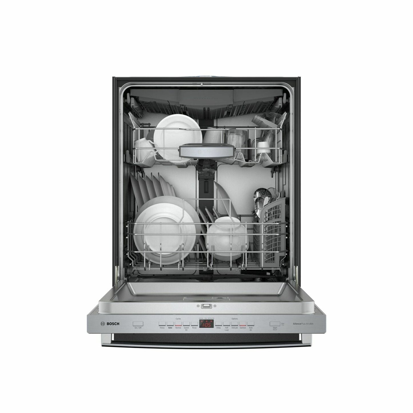 With Bosch PrecisionWash®, intelligent sensors continually scan and check the progress of dishes throughout the cycle, and powerful, precision spray arms go to work targeting every item of every load.