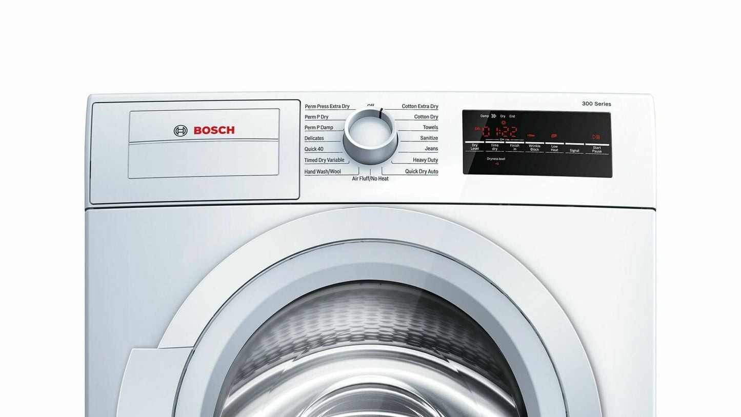 Bosch WTG86400UC 300 Series Cond. Dryer - 208/240V, Cap. 4.0 Cu.Ft., 15 Cyc.,67 Dba Galv.Drum, White/Door Non-Rev.