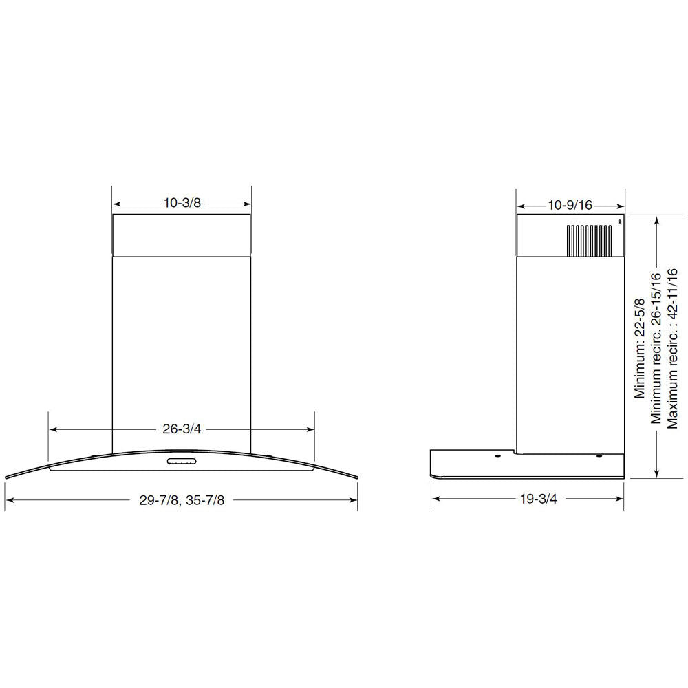 - Install the hood so that the bottom of the unit is 24" to 30" above the cooking surface. Mounting height may be affect by ceiling height.