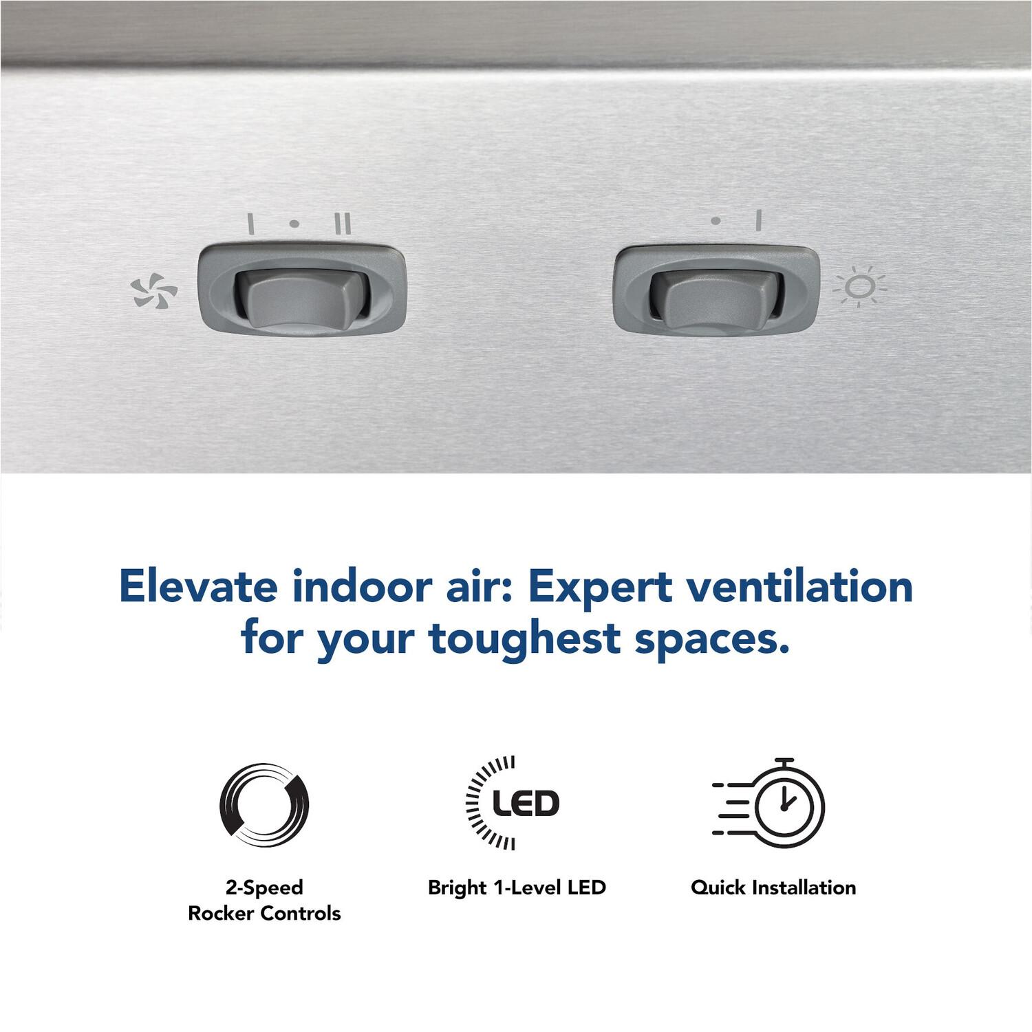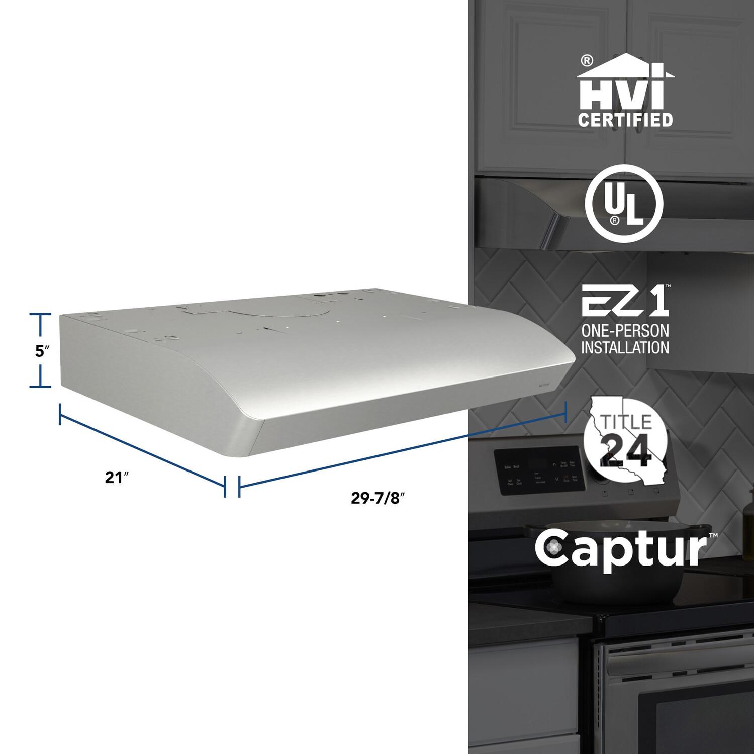 Broan 30-Inch Convertible Under-Cabinet Range Hood, Stainless Steel Mtr1 Is An Under-Cabinet Convertible Range Hood That Features A Refined, Yet Substantial Shape To Bring A Fresh Look To Any Traditional Or Transitional Kitchen Design. Equipped With The Exclusive Broan Captur™ System, Which Combines Advanced Blower Design With New Filter Technology, This 375 Max Blower Cfm-Rated Hood Provides 98.1% Removal Of Smoke And Odor To Protect Your Home And Family From Airborne Pollutants Caused From Cooking. Easy-Flip, Hidden Rocker Switches Operate Mantra S Two Fan Speeds And Led Lighting System. Using The Included Ez1 System, The Hood Can Easily Be Installed By One Person In Up To Half The Time Of A Standard Install.