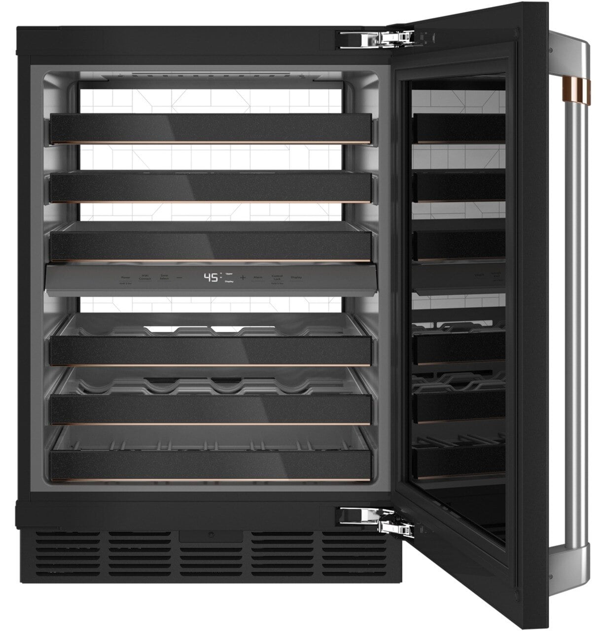 | Wine Racks | 6 Full-Extension, with Matte Black Fronts and Copper Accents |
