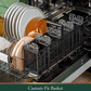 Powerful jets in the top rack and and below the basket in the lower rack work in unison using targeted washing action to clean even the most stuck-on foods from silverware and cooking utensils.