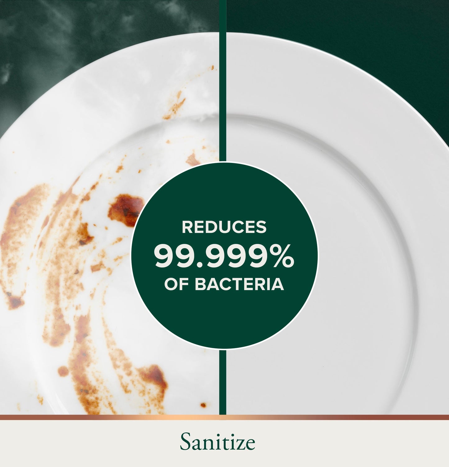 Save time with a high-temperature cycle that steams and sanitizes. Loosen tough soils before the wash cycle begins without the need to pre-rinse or soak. Plus, a sanitation cycle reduces 99.999% of bacteria on dishes.