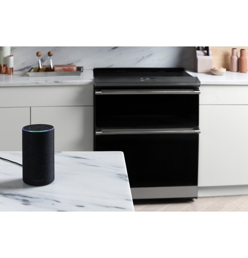 Cafe CES750M2NS5 Café 30" Smart Slide-In, Front-Control, Radiant And Convection Double-Oven Range In Black