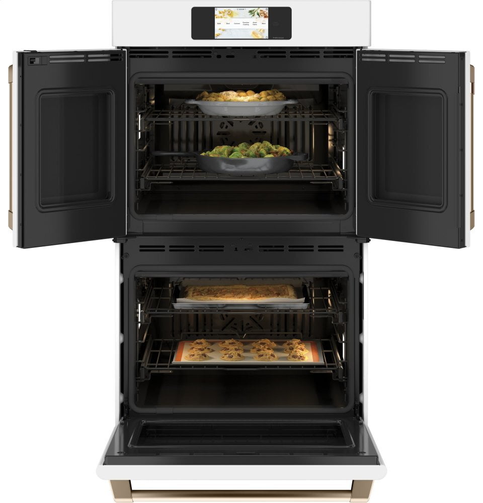 Café French-Door Double Wall Ovens Let You Customize Your Finish And Handle Combinations For A Professional Look That'S All Your Own, While Getting Twice The Cooking Space. The Top Oven'S French Door Design Offers An Ergonomic, Walk-Up Experience And, Since Both Doors Open At Once, You Can Hold Your Cookie Sheet With One Hand And Open The Oven With The Other. And With Precision Cooking Built Into Both Ovens, Your Meals Are Perfectly Executed Every Time.