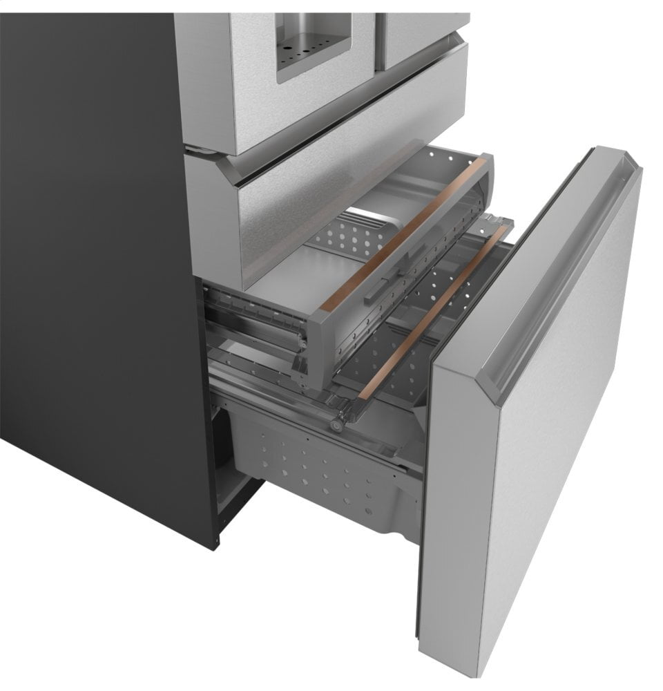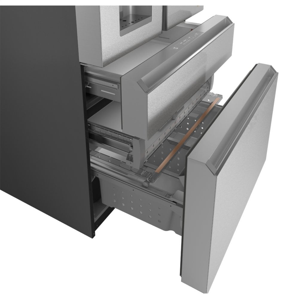 With A Four-Door Configuration And A Contemporary Platinum Glass Finish That Is Easy To Clean, This Café Refrigerator Is The Ultimate Blend Of Style And Substance. Sophisticated Aesthetic Details Invite You In To Experience Stand-Out Features, Such As The Convertible Drawer With A Soft Freeze Setting And A Hands-Free Autofill Dispenser For A Refrigeration Solution That Fits Your Style.