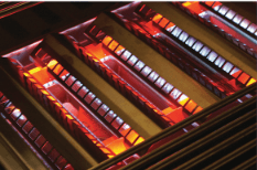 Crossflame Pro Radiant When the patent-pending Crossflame burner design is coupled with the unique radiant system, an ultra-even grilling machine is born. Unlike ceramic heat blocking tray designs, the Caliber Crossflame radiant design further reduces the puddling of grease which causes extended flare ups.