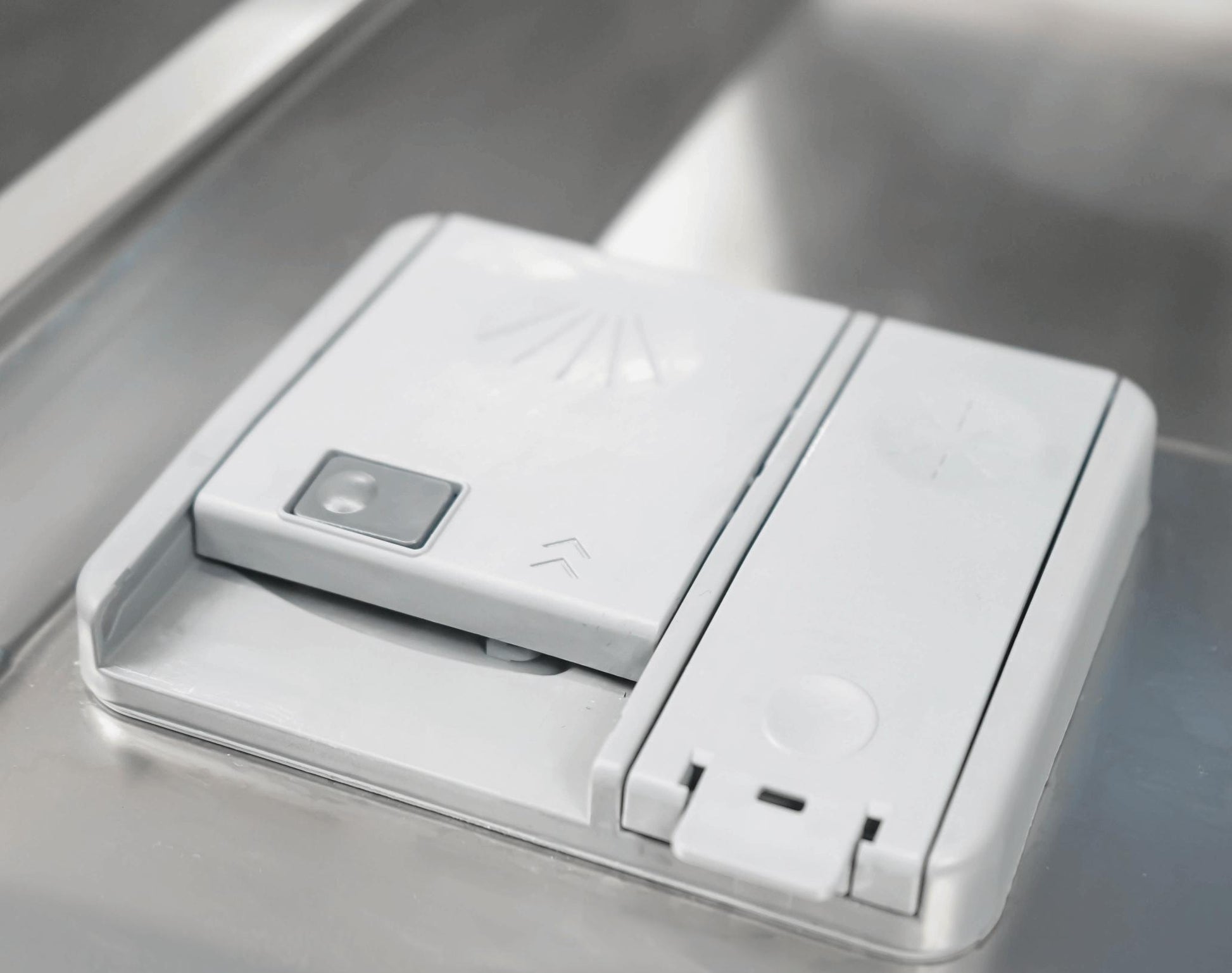 The dishwasher is designed to operate at 51 decibels, which creates less noise and disturbance than the volume of a normal conversation.