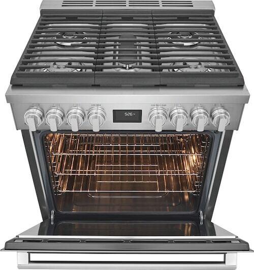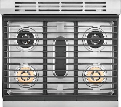 Full-framed linear grates, sturdy knobs, premium brass burner accents and the Electrolux signature pinstriped glass lend to the sleek design that make this range a focal point of your kitchen