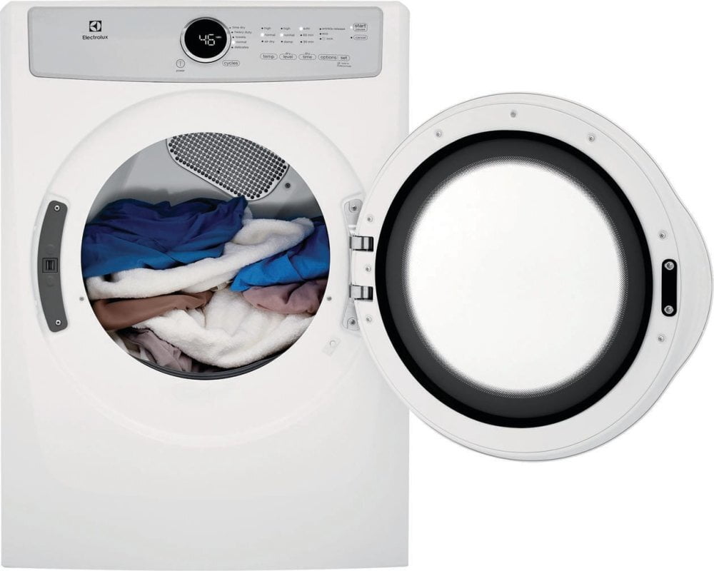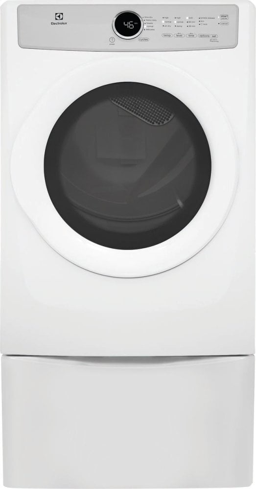 Keeps Clothes Looking Their Best Without Over Drying Clothes Are Gently Tumbled While Moisture Sensors Detect When Clothes Are Dry To Prevent Over-Drying. Energy Star ® Certified Electrolux Dryers Meet Strict Criteria To Guarantee High-Quality Energy Efficient Performance. Largest Capacity Dryer Dry More In Each Load. Our 8.0 Cu. Ft. Dryers Have The Largest Capacity For A Standard 27" Platform. Fits More Rooms With Reversible Door Enjoy Easy Loading No Matter How Your Washer And Dryer Are Configured. 5 Cycles To Care For Every Fabric Perfectly Dry Every Item With Tailored Cycles For Towels, Delicates, And More. Optional Pedestals And Stacking Kit For More Installation Options Raise Your Units With Optional Pedestal Drawers That Provide Extra Storage. Or Use The Optional Stacking Kit For Convenient Placement In Small Spaces. Luxcare ® Lint Shield Keeps Lint Off Your Clothes No Matter When You Clean It