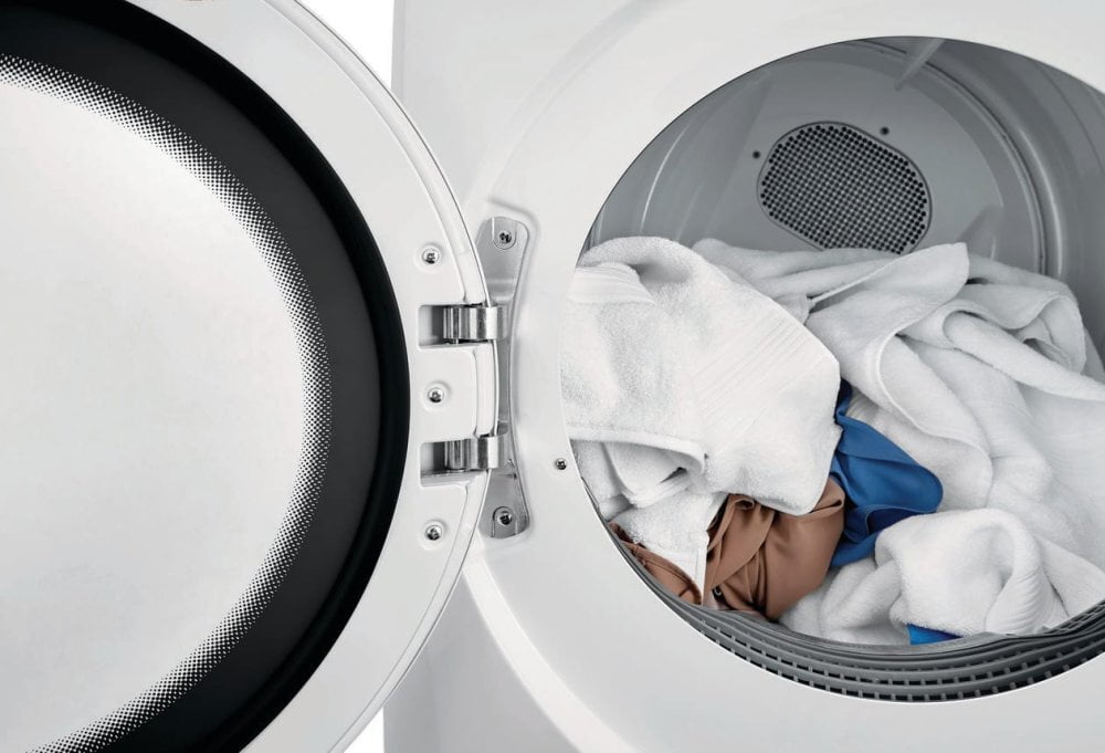 Clothes are gently tumbled while moisture sensors detect when clothes are dry to prevent over-drying.