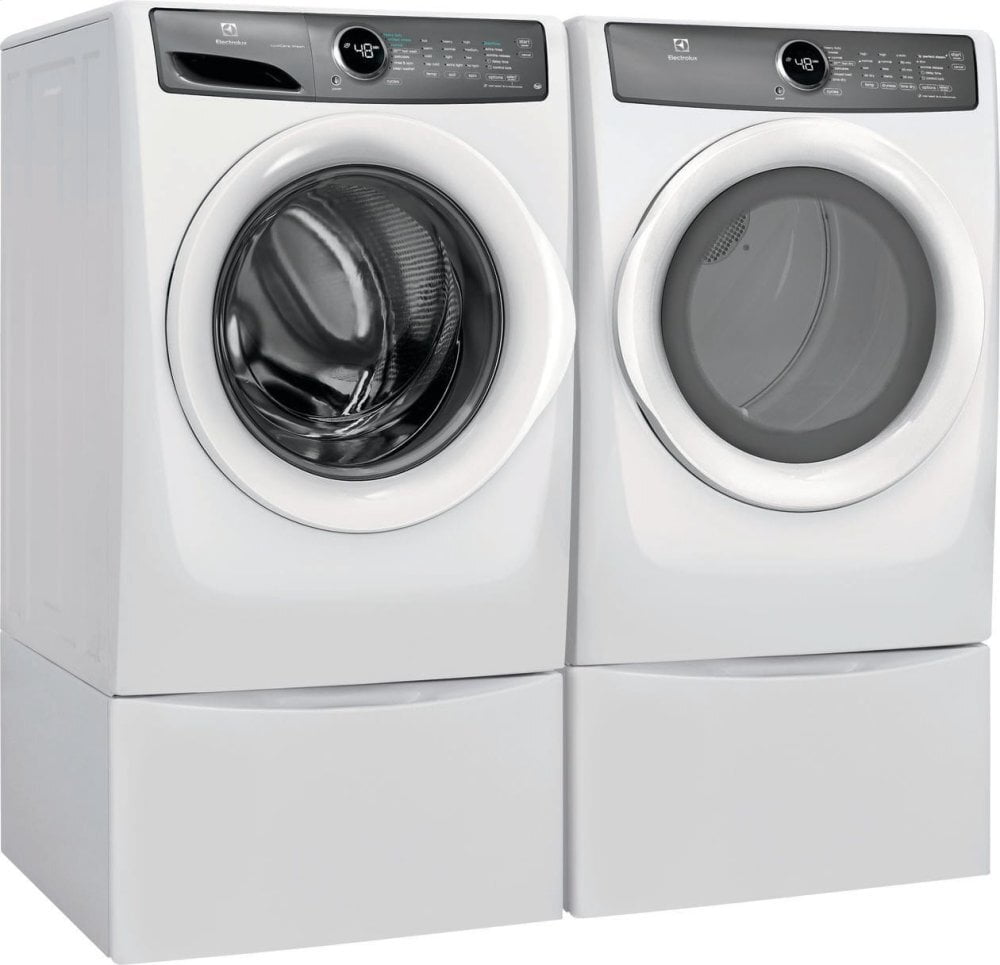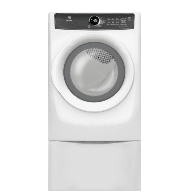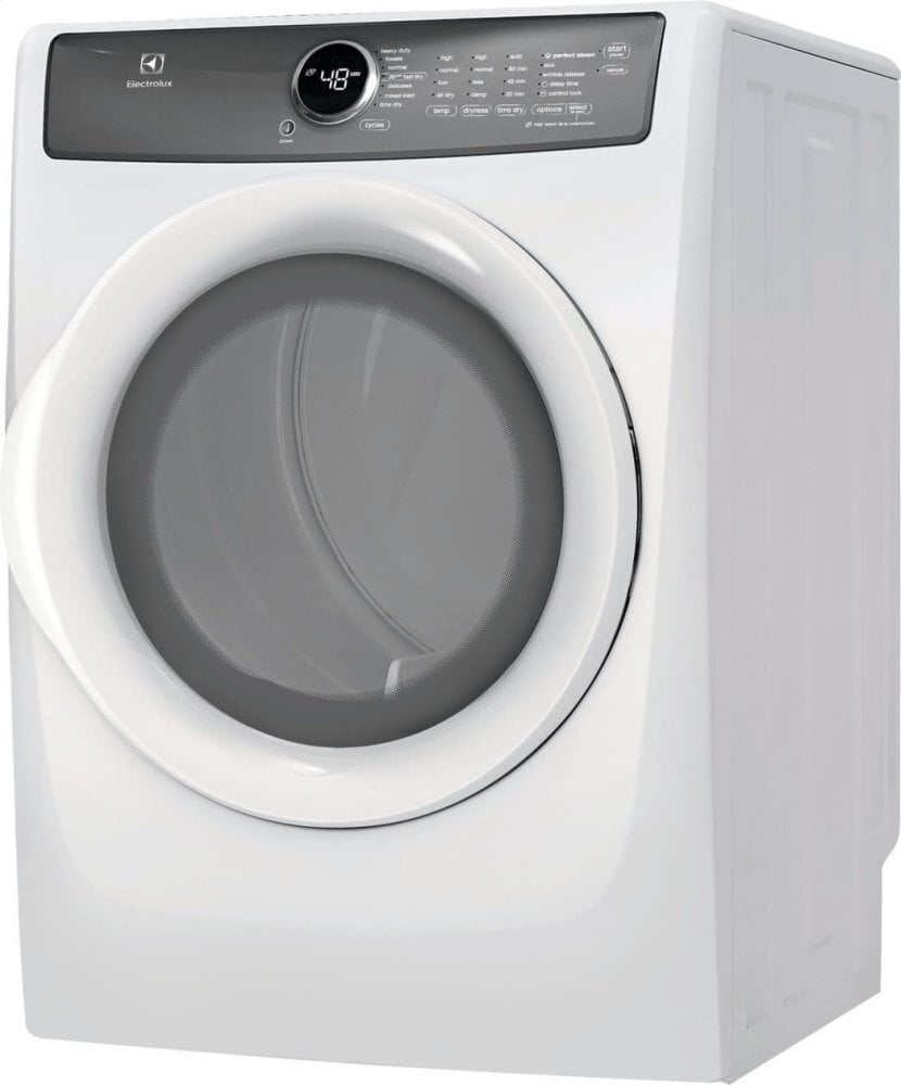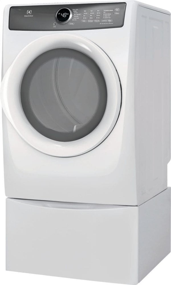 Keeps Clothes Looking Their Best Without Over Drying Clothes Are Gently Tumbled While Moisture Sensors Detect When Clothes Are Dry To Prevent Over-Drying. Energy Star ® Certified Electrolux Dryers Meet Strict Criteria To Guarantee High-Quality Energy Efficient Performance. Perfect Steam™ Wrinkle Release Option Gently Releases Wrinkles And Reduces Static To Keep Clothes Looking Their Best. 7 Cycles To Care For Every Fabric Perfectly Dry Every Item With Tailored Cycles For Towels, Delicates, And More. Fits More Rooms With Reversible Door Enjoy Easy Loading No Matter How Your Washer And Dryer Are Configured. Optional Pedestals And Stacking Kit For More Installation Options Raise Your Units With Optional Pedestal Drawers That Provide Extra Storage. Or Use The Optional Stacking Kit For Convenient Placement In Small Spaces. Luxury-Design ® Lighting Conveniently Find Any Article Of Clothing With Premium Led Lighting That Provides Visibility Inside Your Dryer. Brilliant Led Display Shines In Even The Darkest Laundry Rooms Our Beautifully Bright Display Illuminates Information On Cycles And Lets You Know How Much Time Is Left. Luxury-Quiet™ Sound System So Quiet You Can Run It Whenever You Want Without Disrupting Your Household. Control Lock To Help Avoid Unwanted Use. Extra Large Capacity Dryer Dry More In Each Load With Our 8.0 Cu. Ft. Dryers. Luxcare ® Lint Shield Keeps Lint Off Your Clothes No Matter When You Clean It