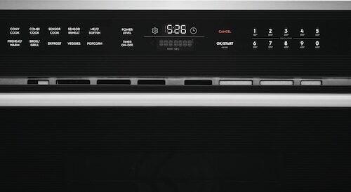 The sleek design of this microwave with glass touch controls, stainless steel handle with gunmetal chrome standoffs and Electrolux signature pinstripe design looks beautiful in any kitchen