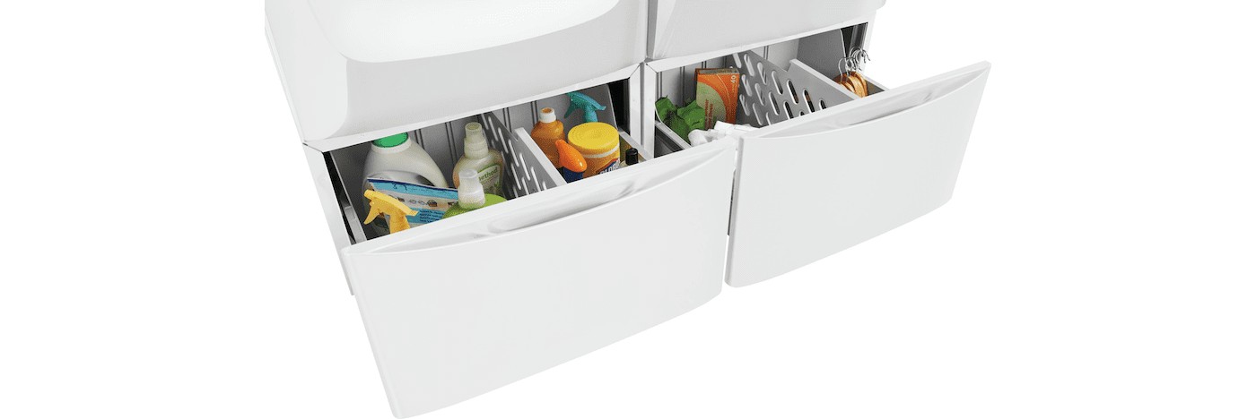 The Electrolux Laundry Pedestal with Storage Drawer helps you organize the entire laundry room.