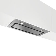 Umbria with 28 and 34 width models available and 11 3/4 depth enables it to be discreetly installed within standard 12 deep cabinetry. With Perimeter Aspiration technology that helps to achieve Top Performance by delivering more powerful and efficient fume extraction, plus it reduces noise. Umbria is designed for both ducted out or recirculating installation with available kit.