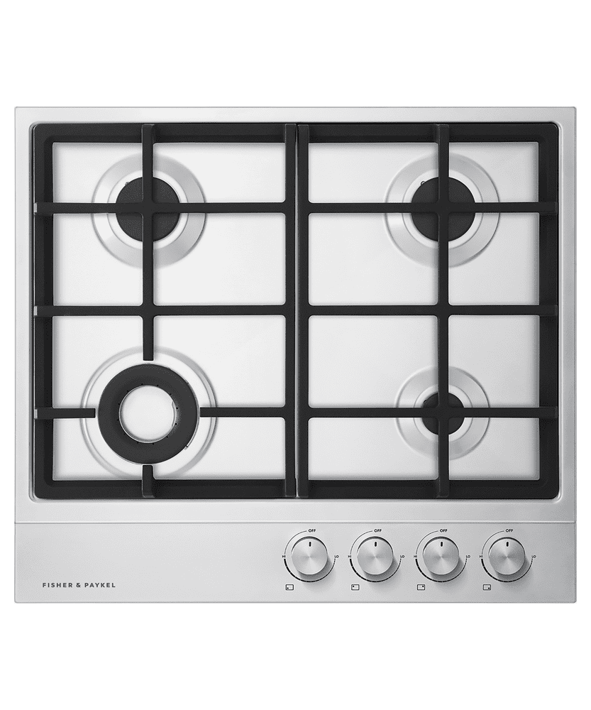 This Fisher & Paykel 24" gas on steel cooktop with four burners gives you plenty of space for multiple pots and pans.