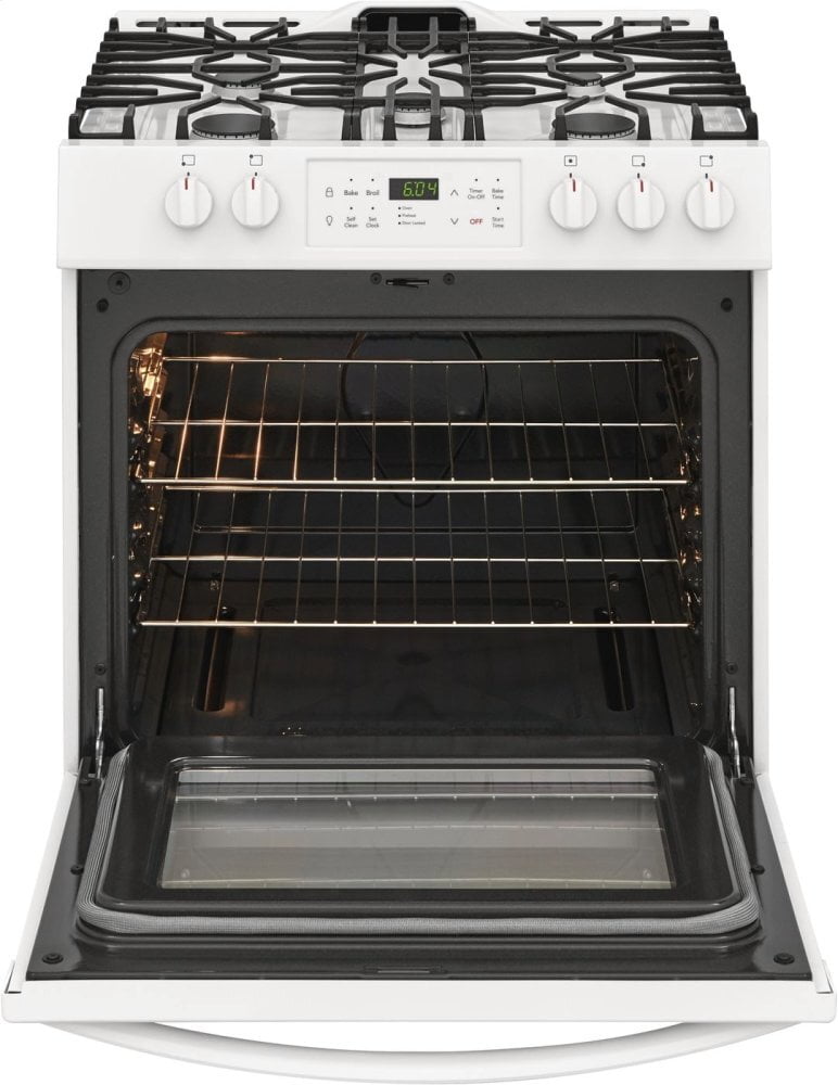Upgrade your kitchen and get the look of a built-in range, with the fit of a traditional freestanding range. This Frigidaire front control range easily fits into 30" cutouts.