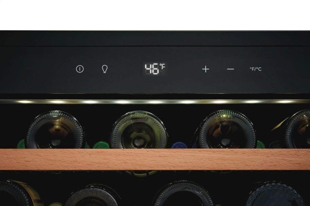 Set temperature anywhere between 41-64 degrees and the wine cooler will hold it precisely.