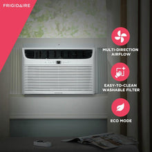 The Frigidaire 28,000 BTU window air conditioner keeps your room cool and comfortable with optimum circulation thanks to multi-directional airflow and three fan speeds. Easily install this air conditioner; this unit distributes the weight into two pieces using a slide-out chassis. Capture dust from the air and keep your air conditioner working efficiently with our easy-to-clean washable filter. Easy Installation Easily install this air conditioner; this unit distributes the weight into two pieces using a slide-out chassis. Multi-Direction Airflow Enables optimum circulation and cooling with 6-way directional airflow and three different fan speeds. Easy-to-Clean Washable Filter Capture dust from the air and keep your air conditioner working efficiently with our easy-to-clean washable filter. And forget having to keep track of filter changes; the Clean Filter Alert will notify you when it's time to clean your filter. Eco Mode Keep your room cool and comfortable; this unit turns on and off at different intervals to ensure that the room stays at the set temperature. Fresh Air Vent Unlike many air conditioners, draw in fresh outdoor air, preventing recirculation of stale air. Programmable Timer Customize times to fit your schedule for immediate comfort when you get home by presetting the unit to turn on and off in half hour increments. Sleep Mode Enjoy maximum comfort and quiet operation throughout the evening hours. With Sleep Mode, the temperature gradually increases a few degrees over the course of the evening. Automatic Restart Automatically resumes operating at its previous settings when power is restored to your unit. Dimensions & Capacity Width: 26.50"