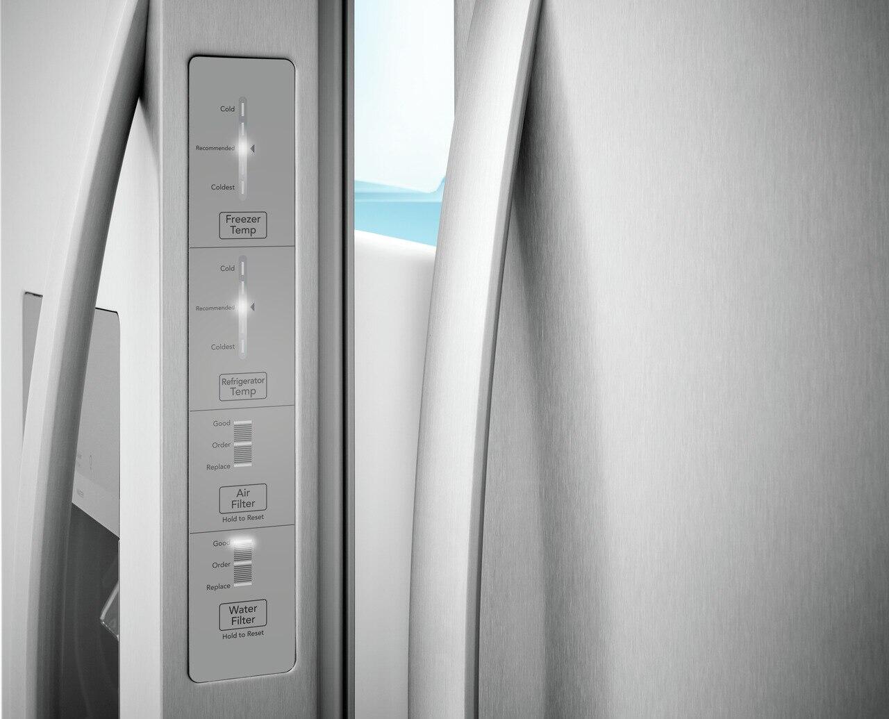 This Frigidaire 33" Side-by-side refrigerator offers our EvenTemp™ Cooling System which reacts quickly to temperature fluctuations and constantly circulates cold air throughout the fresh food and freezer compartments, ensuring a consistent cool from top to bottom.