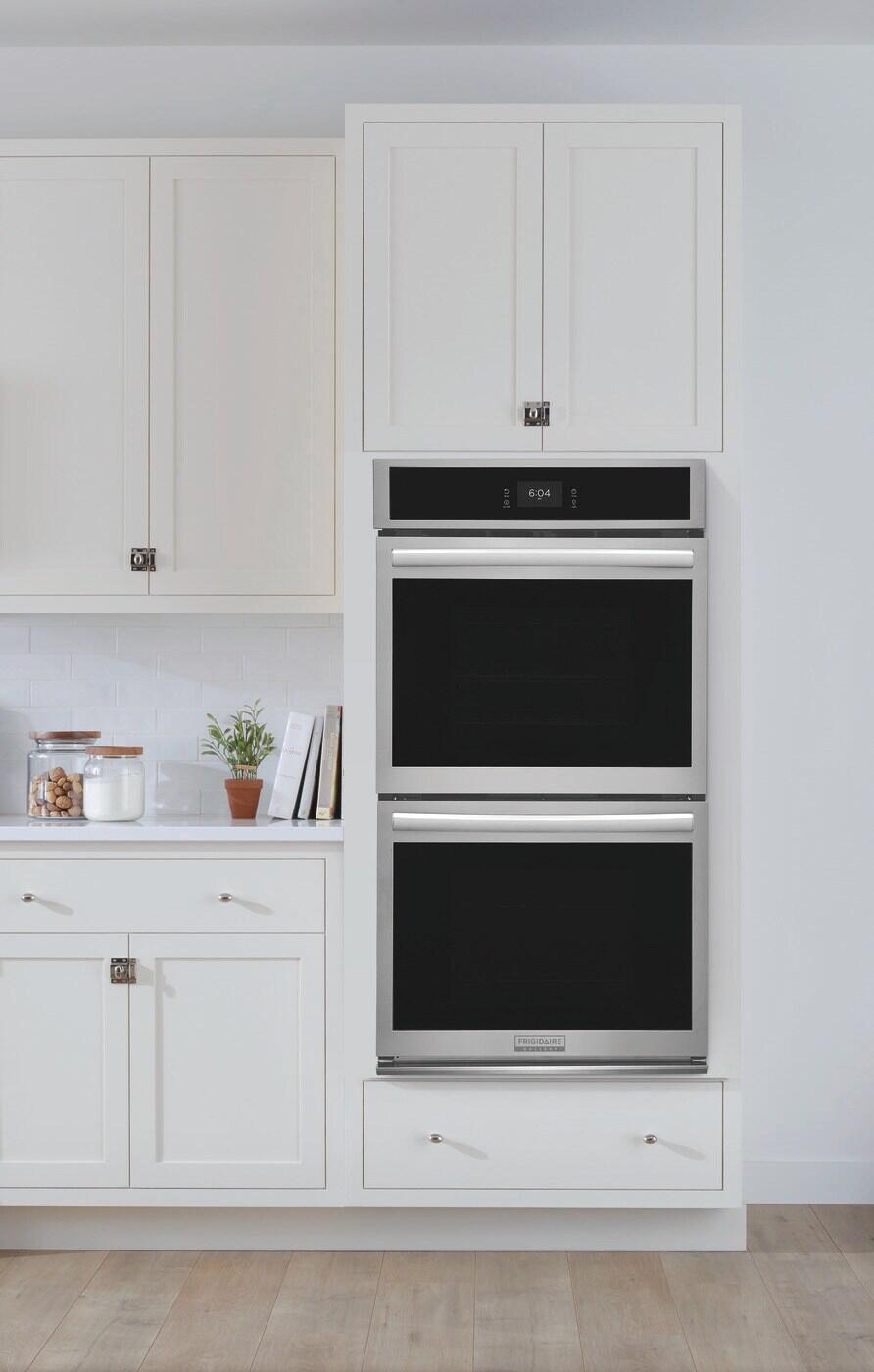 27 Inch Electric Wall Oven with 7.6 Cu.Ft. Capacity The Frigidaire Gallery 27" Double Wall Oven with Total Convection, features our most powerful and advanced convection system, which enables cooking modes like No Preheat, Air Fry, Slow Cook, Steam Bake, Steam Roast, Air Sous Vide, Convection Roast, Convection Bake, Bread Proof and more! Also includes a convenient temperature probe, a premium touch screen digital control panel and our fingerprint resistant, Smudge-Proof® Stainless Steel finish.