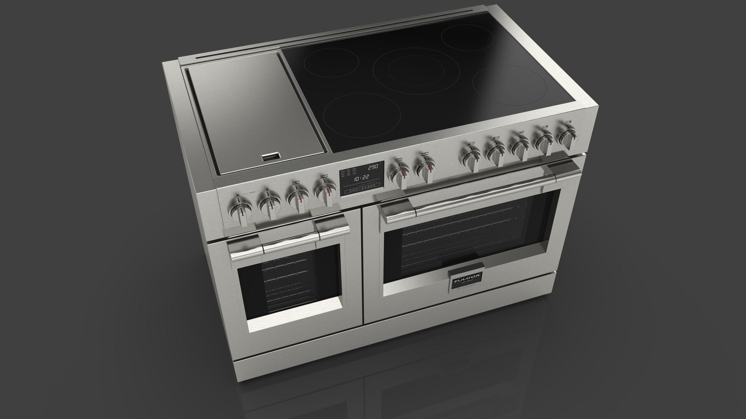 This masterfully designed 48" induction range is a first-of-a-kind all-electric pro range coming with 7 powerful premium European inductors, two of which for the built-in griddle feature.