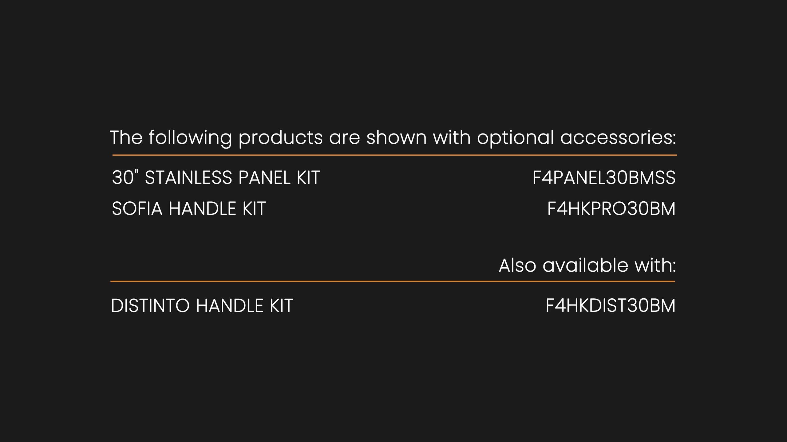 For those who prefer a stainless look, accessory stainless panels are sold separately and can be used with either the Pro or Distinto handle kits to match up perfectly with our Sofia, Accento, or Distinto product lines.