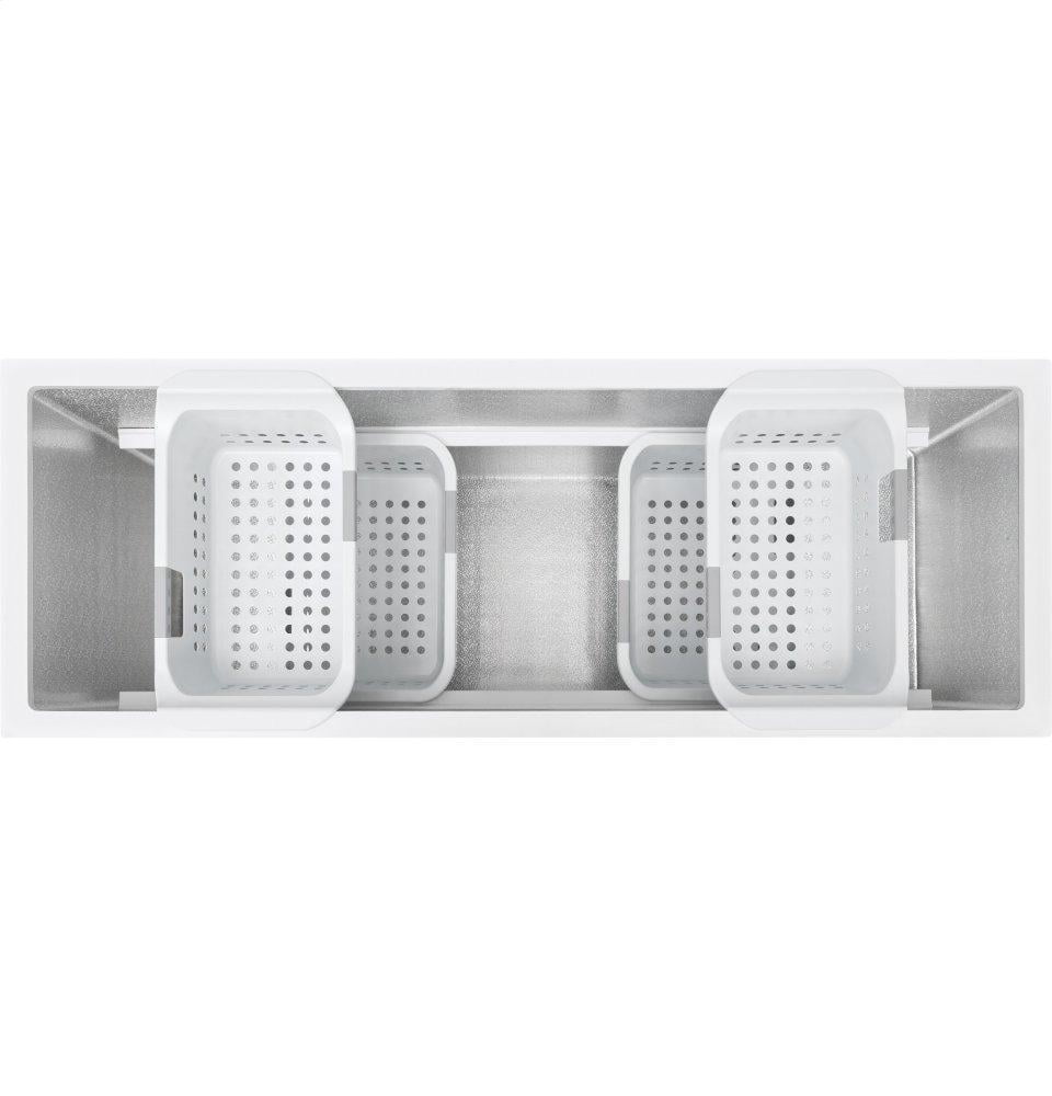 Rail allows convenient access to sliding baskets at different heights in freezer