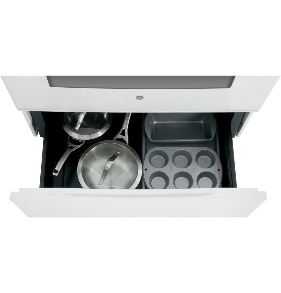 5.3 Cu. Ft. Oven CapacityEnough Room To Cook An Entire Meal At Once Self-Clean OvenCleans The Oven Cavity Without The Need For Scrubbing Sensi-Temp TechnologyEnjoy The Same Cooking Power As A Traditional Coil With An Added Safety Feature That Meets The New Ul858 Household Electric Ranges Standard For Safety Dual-Element BakeUpper And Lower Elements Produce Even Heat And Great Results Removable Full-Width Storage DrawerLarge Trays And Other Cookware Can Be Conveniently Stored For Quick Access