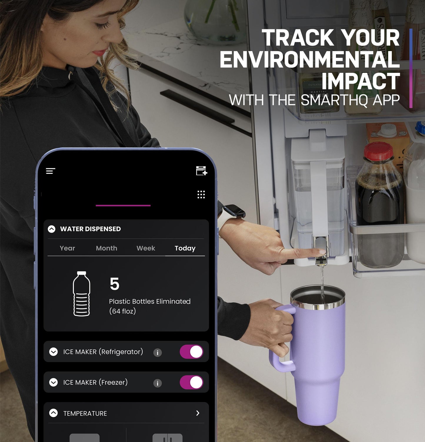 This refrigerator utilizes built-in Wi-Fi, powered by the SmartHQ app, to send instant alerts to your smart device, allowing you to conveniently customize your interior settings