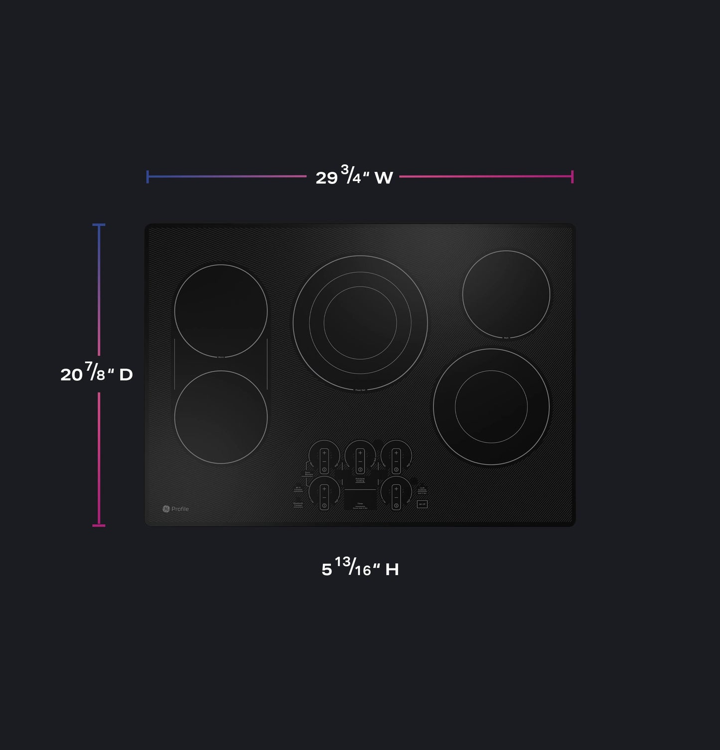 This smart cooktop features Built-In WiFi so you can monitor your burners and view power levels, precision temperature, or on/off.