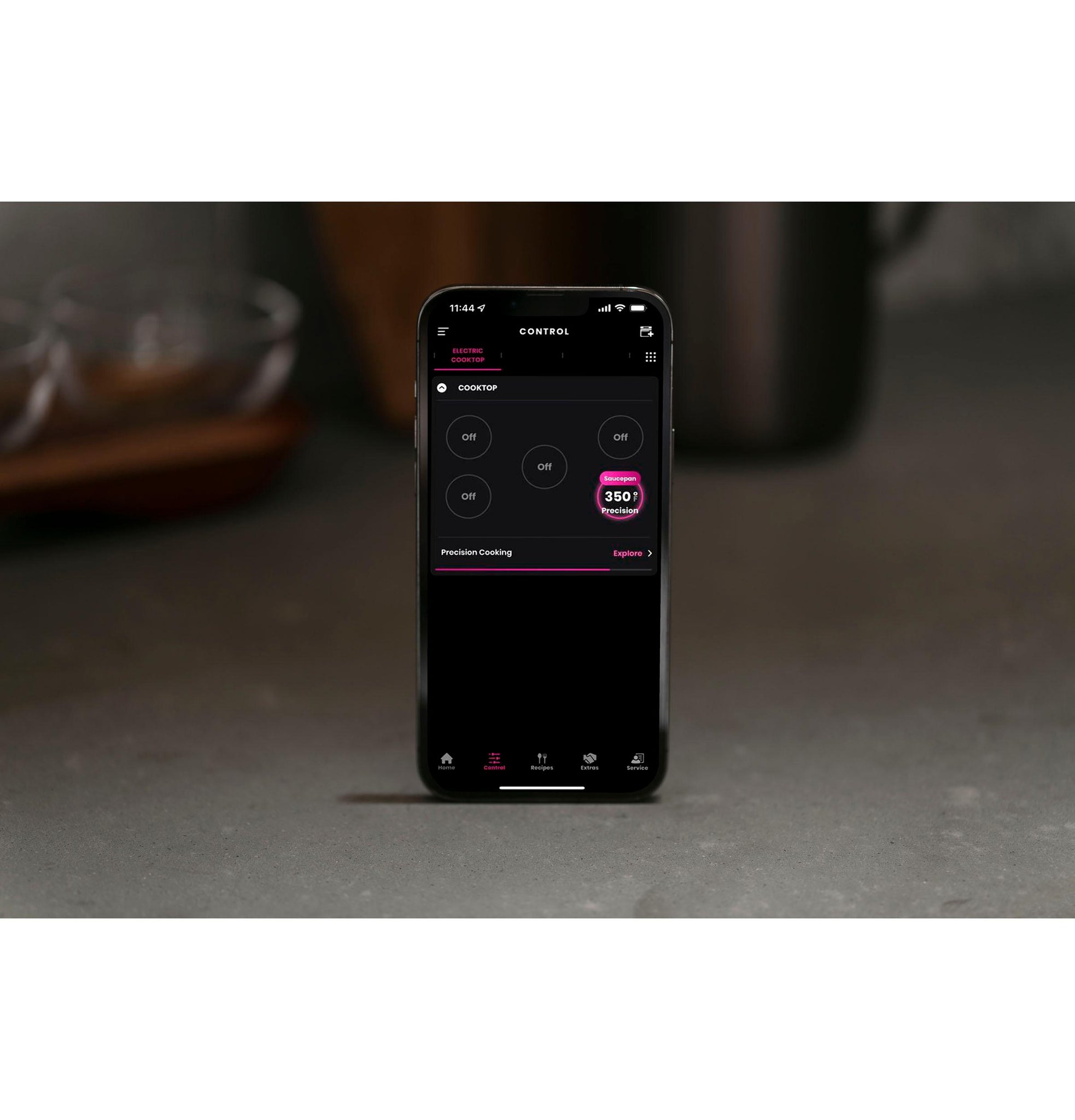 This smart cooktop features Built-In WiFi so you can monitor your burners and view power levels, precision temperature, or on/off.
