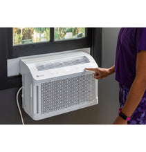 This Energy Star certified window air conditioner is designed to maintain the full view through the window, allowing more natural light into the room. Fits windows 20"-40" wide, 13" minimum window opening height, 10" minimum height from floor.