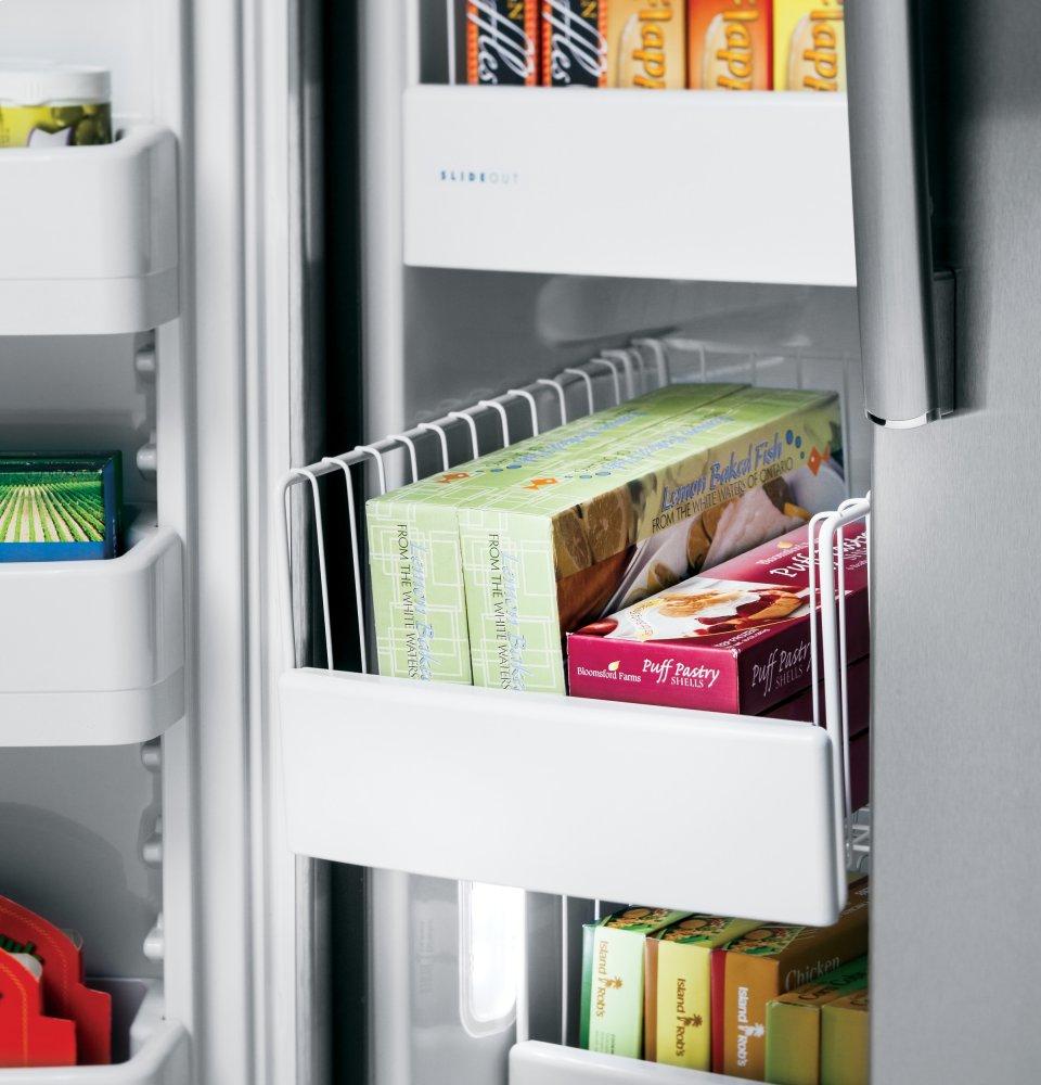Angled All Led Lighting In Fresh Food And FreezerIlluminates Every Inch Of The Fresh Food And Freezer Compartments Adjustable Slide-Out, Spillproof Glass ShelvesRaised Edges Help Contain Spills And Make Clean Up Quick And Easy Fresh Food Multi-Level DrawersProvide The Ideal Environment For Storing Your Fruits And Vegetables Adjustable Clear Look Door BinsOffers Ideal Space For Large Containers In The Door And Frees Up Valuable Shelf Space Glass Freezer ShelvesEnjoy A High-End Appearance With Secure Storage For A Variety Of Items Arctica IcemakerHolds Up To 10 Lbs Of Ice, So There'S Enough For All Occasions Advanced Water FiltrationReduces Trace Pharmaceuticals From Water And Ice* (* Removes 98% Of Ibuprofen, Atenolol, Fluoxetine, Progesterone And Trimethoprim. These Pharmaceuticals Are Not Necessarily In All Users' Water) Multi-Level Freezer BasketsProvide Plenty Of Easy-Access Storage For Frozen Foods Quick Ice SettingCreate Ice Up To 50% Faster Than Normal Settings Turbo Cool SettingDrops Interior Temperature To Maintain Freshness After Frequent Openings