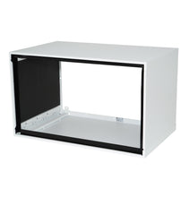 - Solid-sided wall case fabricated of galvanized steel with baked enamel (white) finish
