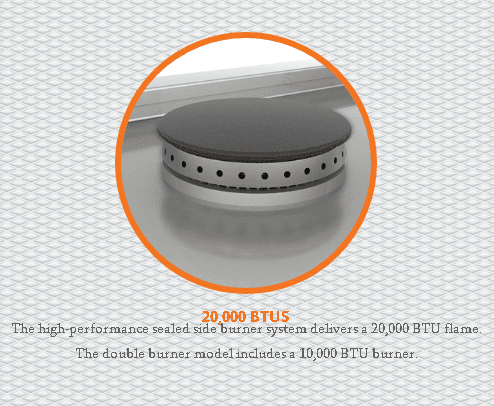 - Two high-performance sealed burners (10,000 BTUs and 20,000 BTUs) deliver the power and versatility to take care of any side or large dish.