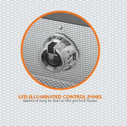- LED-illuminated control panel makes it easy to dial in the perfect flame.