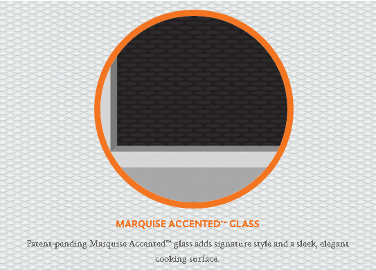 - Patent-pending Marquise Accented glass adds signature style and a sleek, elegant cooking surface.