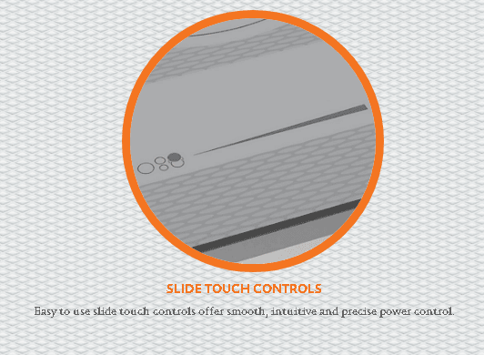 - Easy to use slide touch controls offer smooth, intuitive and precise power control.