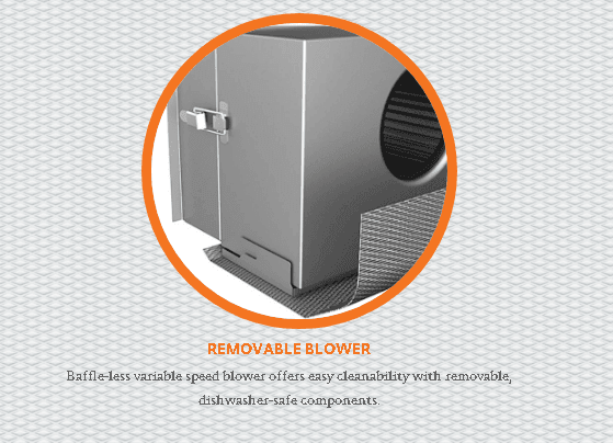 - Baffle-less variable speed blower offers easy cleanability with removable, dishwasher-safe components.