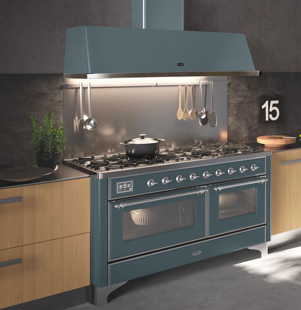 Ilve UAM150BG Majestic 60 Inch Blue Grey Wall Mount Range Hood