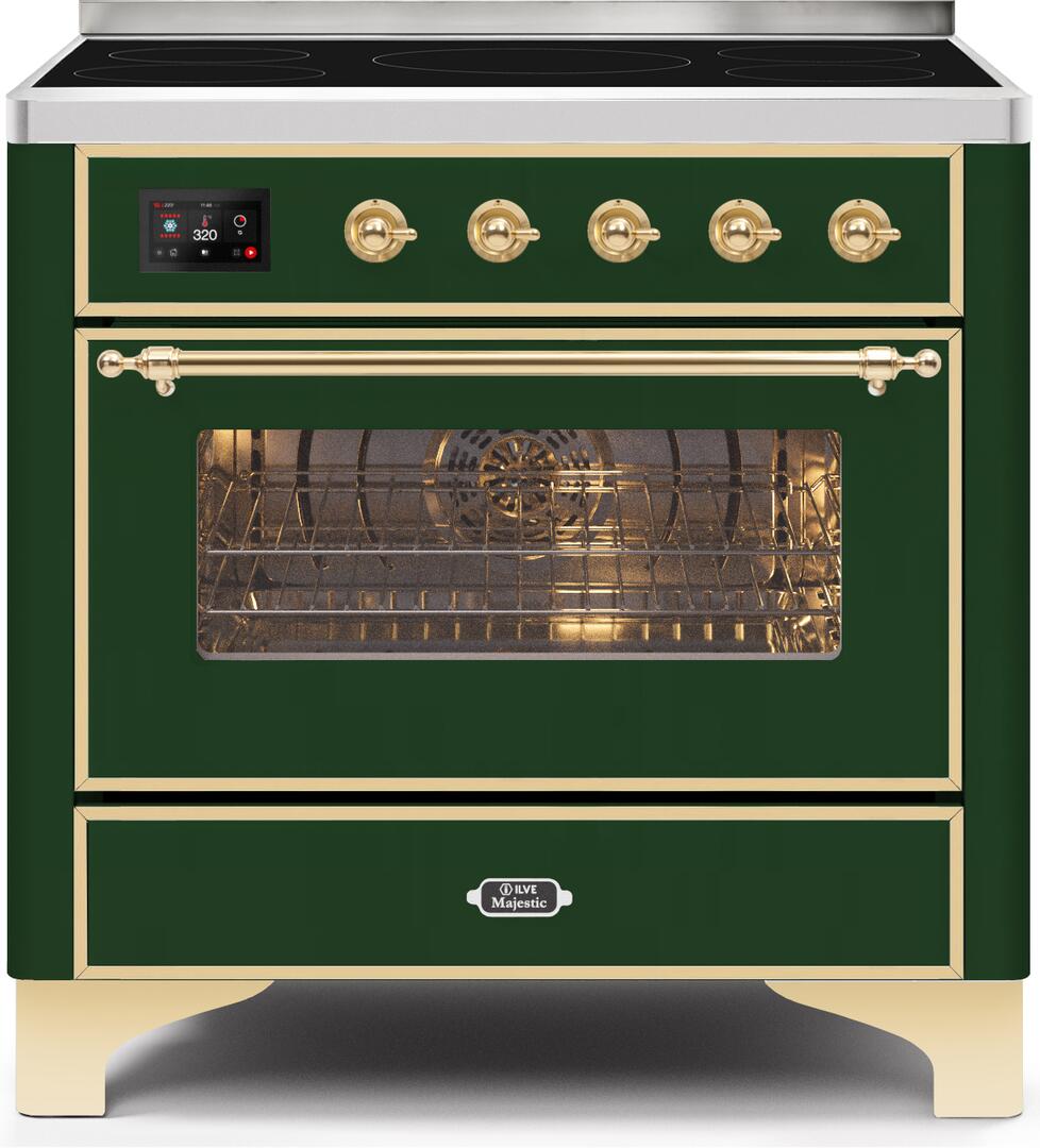Ilve UMI09NS3EGG Majestic Ii 36 Inch Electric Freestanding Range In Emerald Green With Brass Trim