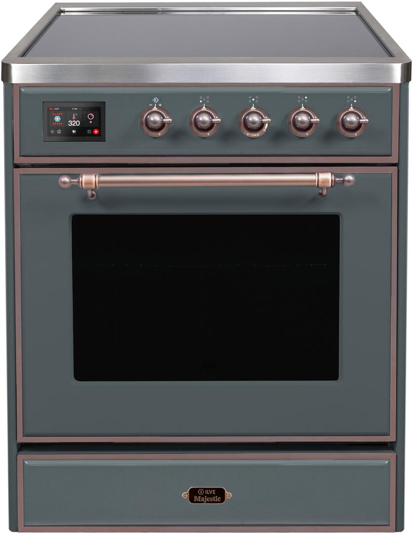 Ilve UMI30NE3BGB Majestic Ii 30 Inch Electric Freestanding Range In Blue Grey With Bronze Trim