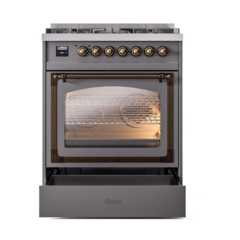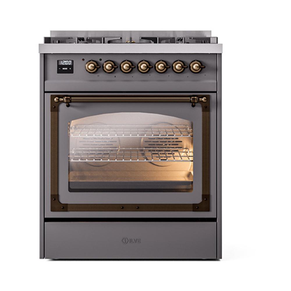 Ilve UN30NMPMGB Ilve Un30Nmpmgb Nostalgie Ii Noblesse 30" Dual Fuel Range (Natural Gas, Triple Glass Door, Graphite Matte, Burnished)