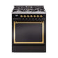 Ilve UN30QNMPBKGLP Ilve Un30Qnmpbkglp Nostalgie Ii Noblesse 30" Dual Fuel Range (Liquid Propane, Solid Door, Glossy Black, Brass)