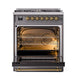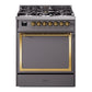 Ilve UN30QNMPMGGLP Ilve Un30Qnmpmgglp Nostalgie Ii Noblesse 30" Dual Fuel Range (Liquid Propane, Solid Door, Graphite Matte, Brass)