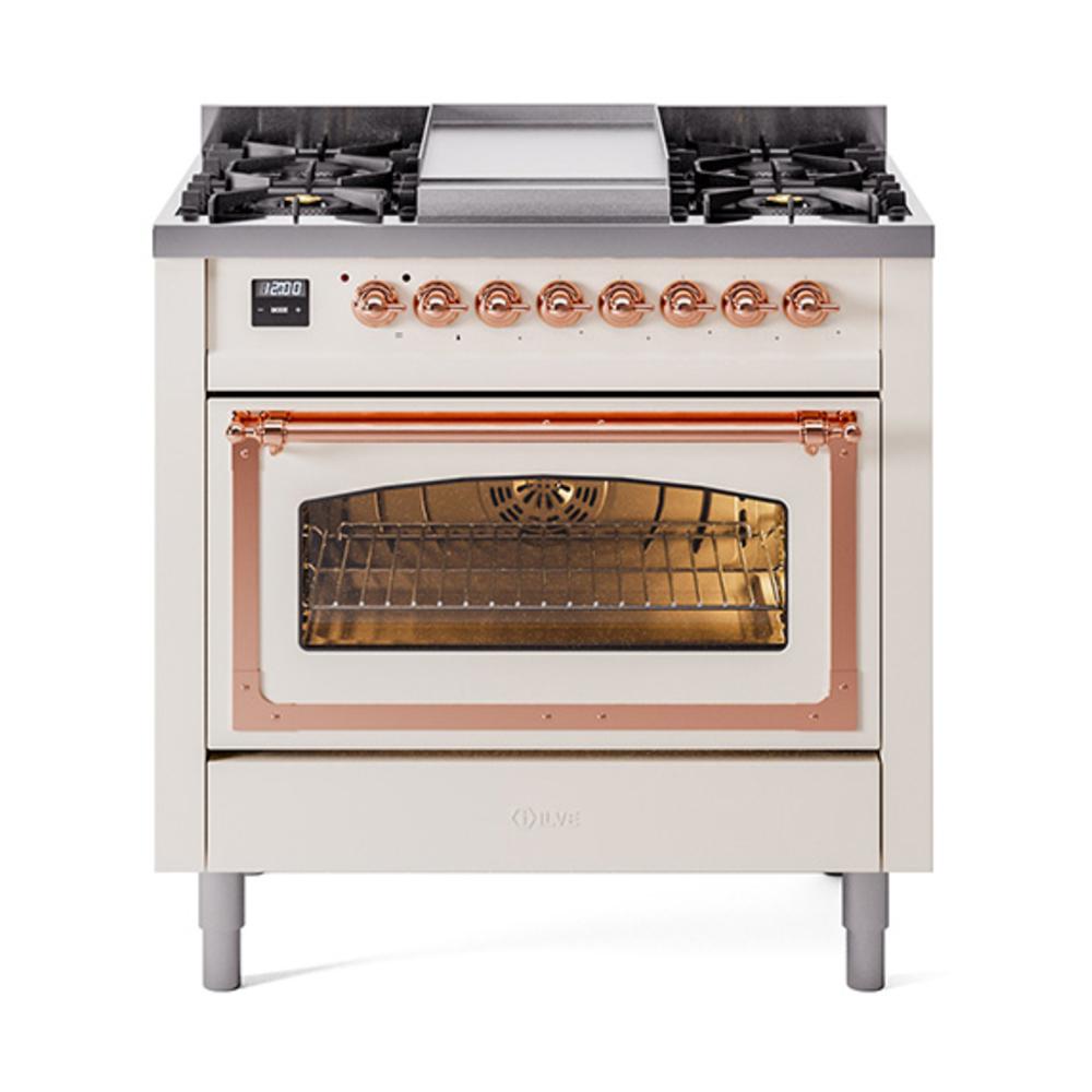 Ilve UN36FNMPAWP Ilve Un36Fnmpawp Nostalgie Ii Noblesse 36" Dual Fuel Range (Natural Gas, Triple Glass Door, Antique White, Copper)