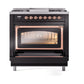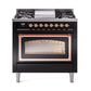 Ilve UN36FNMPBKP Ilve Un36Fnmpbkp Nostalgie Ii Noblesse 36" Dual Fuel Range (Natural Gas, Triple Glass Door, Glossy Black, Copper)