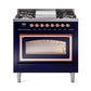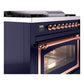 Ilve UN36FNMPMBP Ilve Un36Fnmpmbp Nostalgie Ii Noblesse 36" Dual Fuel Range (Natural Gas, Triple Glass Door, Midnight Blue, Copper)
